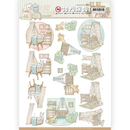 3D Push Out - Yvonne Creations - Newborn - Baby Cradle Description SB10522 A fantastic die-cut decoupage sheet with 3D images. Images can be pushed-out of the sheet so there’s no need for scissors. Especially convenient for them who have trouble cutting out fine details.