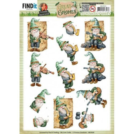 3D Push Out - Yvonne Creations - Great Gnomes - Music Gnomes