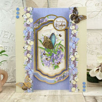 Toppers feature lovely vintage flower cards with traditional botanical sketches in the backgrounds, all decorated with beautiful butterflies, in an array of different topper shapes and sizes. Arranged into four traditional colourways, the Matt-tastic sheets feature a mix of lovely lilacs, rose petal pinks, peachy oranges and ruby reds set atop of creamy backgrounds. All embellished with glistening gold foil frames and accents to highlight the butterflies and add elegant detail.