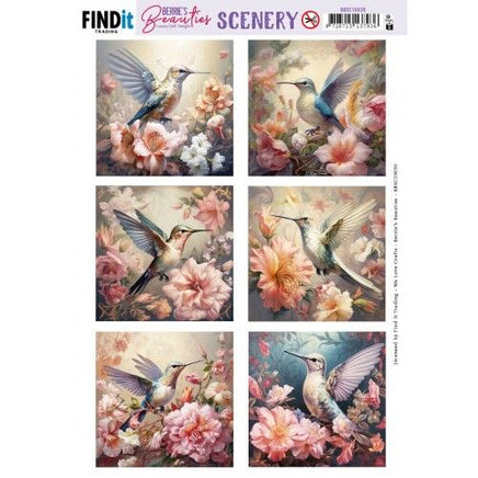A4 SIZE, 6 images, die-cut, Scenery Push out - Berries Beauties - Hummingbird - Square