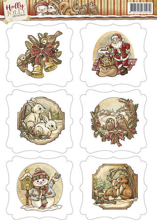 Topper - Yvonne Creations - Holly Jolly Description SB10120 Die-cut decoupage sheet with Toppers in Yvonne Creations Holly, Jolly Christmas Collection theme. Toppers can be pushed-out of the sheet so there is no need for scissors. Especially convenient for those who have trouble cutting small details.