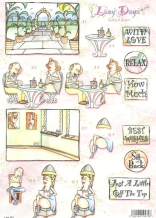 3D - Die Cut - Lazy Days - Ladies of Leisure At the Hair Dressers, Drinking with Husband and Garden Arch