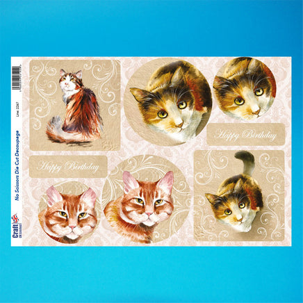 A4 sheet Pets die cut Decoupage. A collection of superb feline studies with flourish backgrounds and including gold foiled borders and highlights