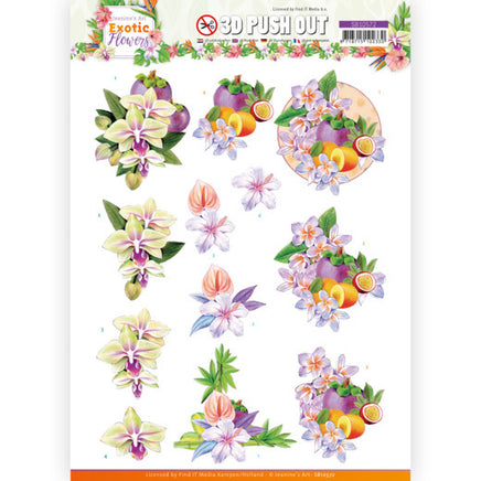 3D Push Out - Jeanine's Art - Exotic Flowers - Purple Flowers Description SB10572 A fantastic die-cut decoupage sheet with 3D images. Images can be pushed-out of the sheet so there’s no need for scissors. Especially convenient for them who have trouble cutting out fine details.