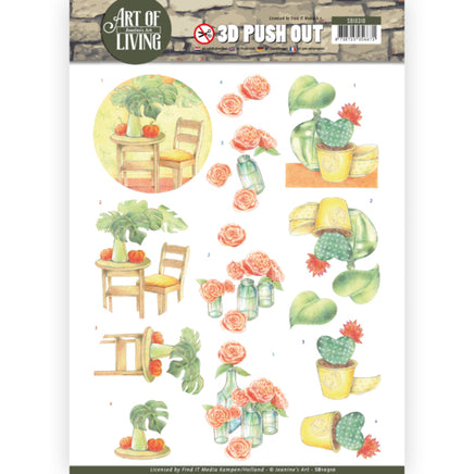 3D Pushout - Jeanine's Art - Art of Living - Orange Art Description SB10310 A fantastic die-cut decoupage sheet with three 3D images. Images can be pushed-out of the sheet so there’s no need for scissors. Especially convenient for them who have trouble cutting out fine details.