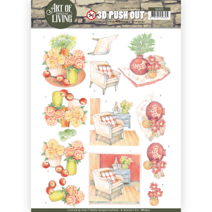 3D Pushout - Jeanine's Art - Art of Living - Red Art Description SB10312 A fantastic die-cut decoupage sheet with three 3D images. Images can be pushed-out of the sheet so there’s no need for scissors. Especially convenient for them who have trouble cutting out fine details.