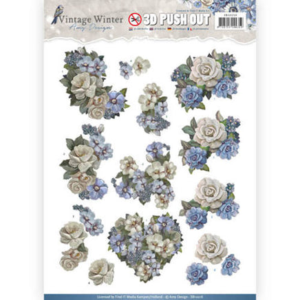 Pushout- Amy Design - Vintage Winter - Winter Flowers Description SB10216 A fantastic die-cut ecoupage sheet with three 3D images. Images can be pushed-out of the sheet so there’s no need for scissors. Especially convenient for those who have trouble cutting out fine details.