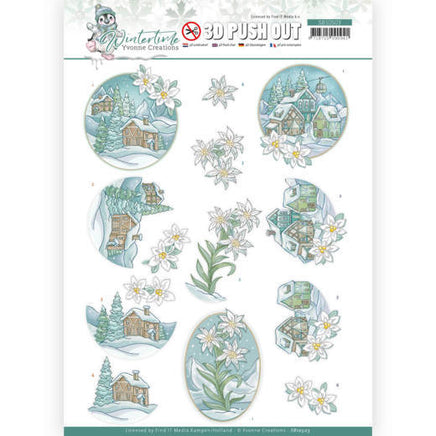 3D Push Out - Yvonne Creations - Winter Time - Edelweiss Description SB10503 A fantastic die-cut decoupage sheet with three 3D images. Images can be pushed-out of the sheet so there’s no need for scissors. Especially convenient for them who have trouble cutting out fine details.
