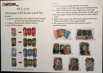 DCL 3105 Packet includes: 4 Die Cut sheets Foil Cards, 4 Matching Bands, Oval Foil Tags & Round Foil Tags 1 sheet Foam Pad 4 Envelopes Instructions to make at least 4 Screen Cards