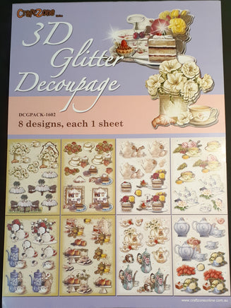 DCGPACK 1602 PACKET CONTAINS: 8 designs of A4 Sheets of Glitter 3D die-cuts Cardstock 300 gsm makes at least 24 cards