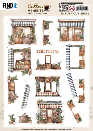 Push out sheet with three 3D images in the theme of the Coffee Moments collection by Berries Beauties.