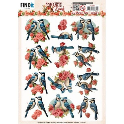 3D Push Out - Berries Beauties - Romantic Birds - Romantic Blue Jay