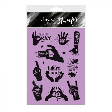The quirky and fun Hands Up set features a unique style that mixes sentiments with hand silhouettes for a bold contemporary style.