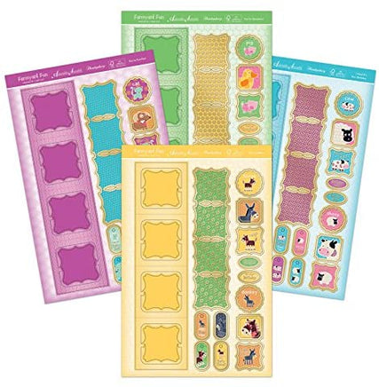 Farmyard Fun- Makes at least 4 cards contains: 4 foiled and d300 gsm ic cut cards and element sheets Instructions and envelopes