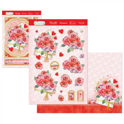 Contains an A5 Deco-Large base, A4 Decoupage elements sheet and A4 cardstock sheet Features a envelope bursting with roses Perfect for all-year crafting, and a variety of occasions Covers Birthdays, Anniversary and much more Contains: 1 x 300 gsm foiled and die cut A4 Sheet 1 x 350 gsm Accent foiled cardstock 1 x 350 gsm Printed cardstock makes at least 2 cards.