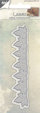 4.75" x 0.75". This die cuts out the outline of the leaves, and embosses the veins in a second pass