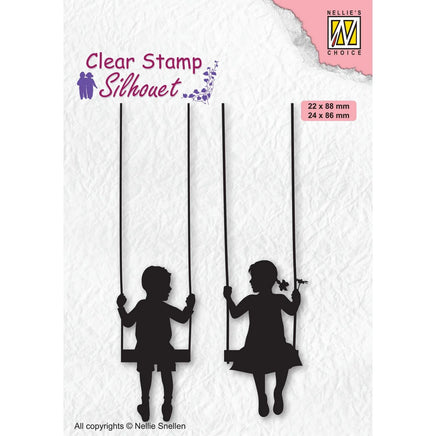Nellie's Choice - Silhouet Clear Stamps Boy And Girl Swinging