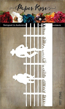 Paper Rose - Men Sitting on Fence Metal Cutting Die 17283