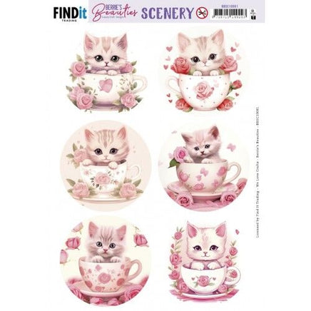 Scenery Push out - Berries Beauties - Kitten in Cup - Round