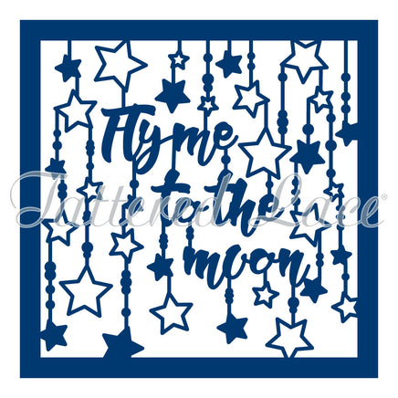 The Tattered Lace Floating in the Air Fly me to the Moon die features a 'Fly me to the Moon' sentiment inside a square border, with a star droplet cut out detailing. This die would look great matted onto cards or used inside of an aperture. This sentiment is great for a wide variety of occasions such as Valentines, Anniversaries, Travelling and many more.
