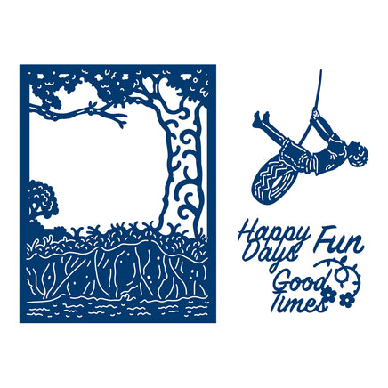 Tattered Lace Gazing at the Countryside is perfect if you are looking to make something with that perfect setting. This die set consists of a countryside scene panel that can be used as a background. There is also a boy on a tyre swing that can be place onto the tree branch along with three different sentiments ‘Happy days’, ‘Fun’ and ‘Good Times’. Use the frame die to create an aperture, the sentiments can be suited to an array of occasions throughout the year. This Die is a great way to create childhood memories and add an element of fun to cards and crafts.