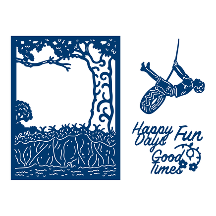 Tattered Lace Gazing at the Countryside is perfect if you are looking to make something with that perfect setting. This die set consists of a countryside scene panel that can be used as a background. There is also a boy on a tyre swing that can be place onto the tree branch along with three different sentiments ‘Happy days’, ‘Fun’ and ‘Good Times’. Use the frame die to create an aperture, the sentiments can be suited to an array of occasions throughout the year. This Die is a great way to create childhood memories and add an element of fun to cards and crafts.