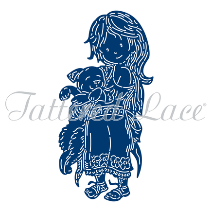 Oops is a sweet die featuring a little girl cuddling a puppy, and they both look very happy with the arrangement.