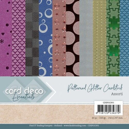 Card Deco Essentials - Patterned Glitter Cardstock A4 pkt 10 sheets