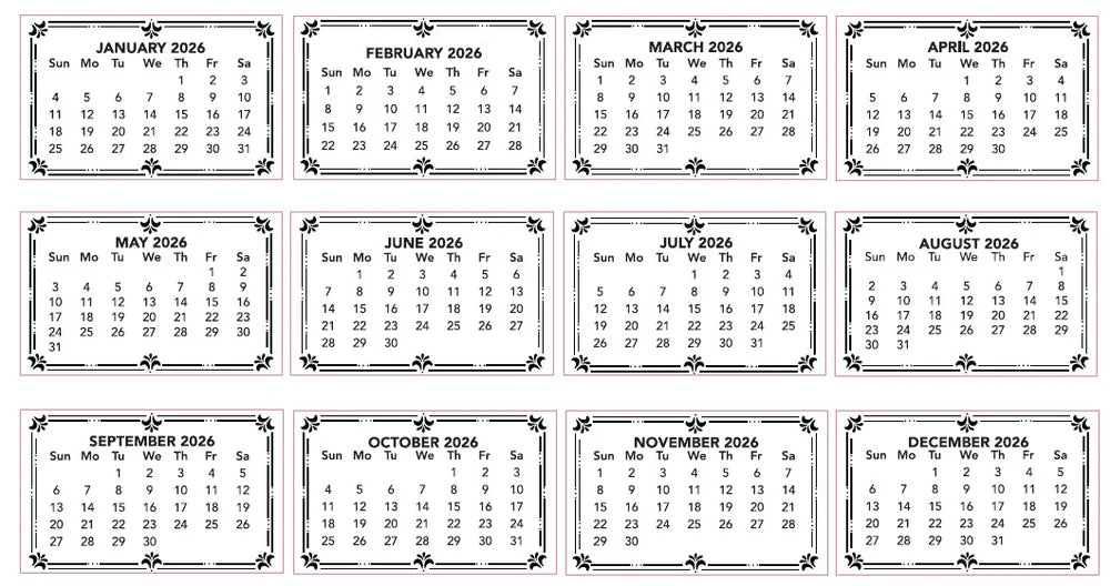 Couture Creations - 2026 Calendar Tabs - 10 sets/pads x 12 months