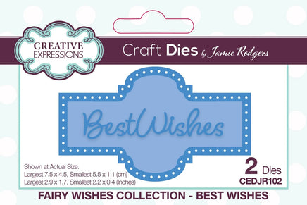The Best Wishes Craft Die from Jamies's Fairy Wishes collection is perfect to add the finishing touch to all your cards and paper craft projects. This die set will work beautifully with the other dies in the collection. The high quality steel dies are compatible with most home die cutting machines.