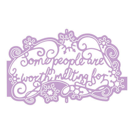 Create a die-cut sentiment with true Disney styling, reading the popular Frozen quote: 'Some people are worth melting for'. Use this die individually or pair with the edger to use it as a pop up die.