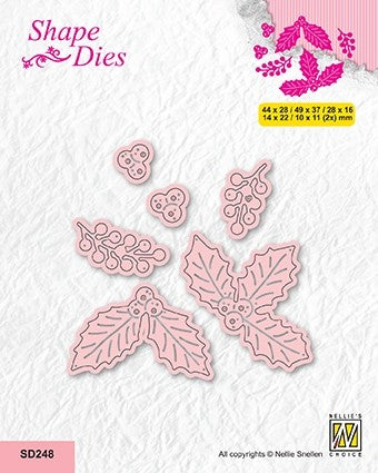 SD248 shape dies Christmas "Holly leaves and berries" size: 44x28 / 49x37 / 28x16 / 14x22 / 10x11 / 10x11 (2x) mm
