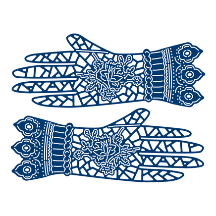 This Gloves Die features a beautiful pair with intricate lace detailing and beautiful floral accents. Throughout history, ladies gloves have symbolised high status, cleanliness and purity.