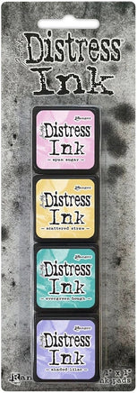 Tim Holtz Distress Mini Ink Pads 4 pack - Kit 4: Spun Sugar, Scattered Straw, Evergreen Bough and Shaded Lilac