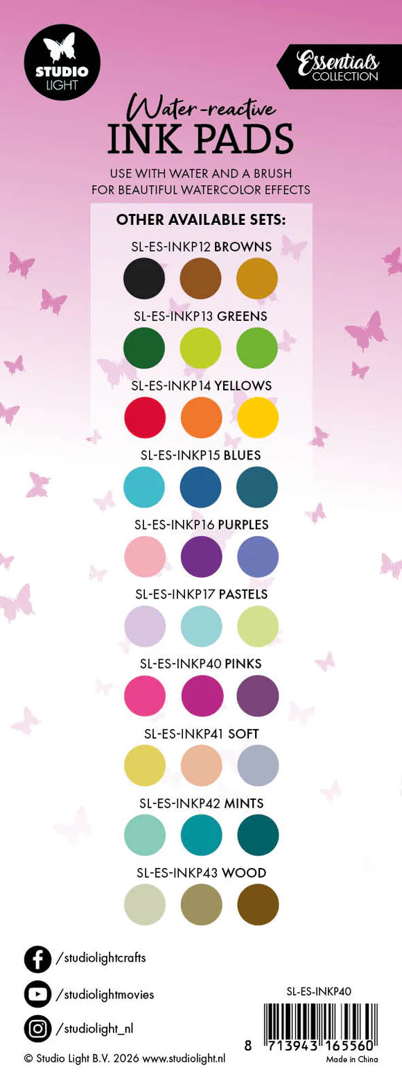 Studio Light - Essentials - Water - reactive Ink pads - Pinks (Pkt 3)