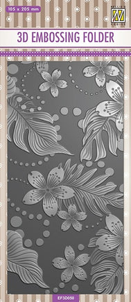 EF3D050 3D Embossing folder slimline "leaves & flowers" 105x205mm This design will be a really useful addition to any crafting stash, perfect for cards, scrapbooking and so much more. The 3D embossing folder will give a deep impression to create a detailed design with a sculpted emboss effect, providing a new level of bold dimension to papercrafts. Mist card with water before use for best results. Ideal for adding extra dimension and texture to a variety of papercraft projects. Enhance designs using Shimmer Polishes, Glitter, Ink and lots more (each sold separately). Compatible with most leading die-cutting and embossing machines.