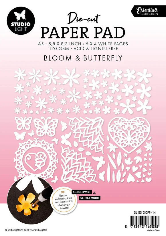 Studio Light - Essentials - Die-cut Paper Pad - Bloom & Butterfly A5 size.