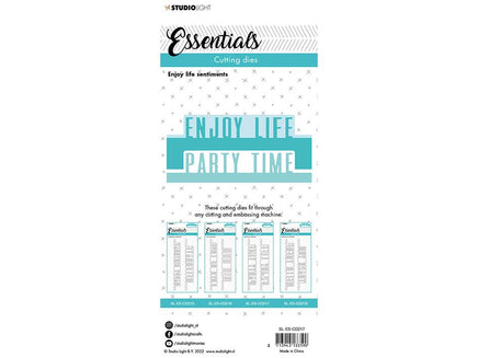 Studio Light Cutting Essentials Die - Thank You Sentiments size 60mm x 152mm ( 4 pcs) (ENJOY LIFE, PARTY TIME)