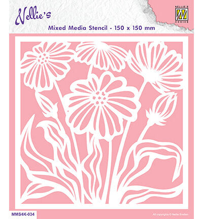 MMS4K-034 Mixed Media Stencil, Christmas flowers. 150x150mm