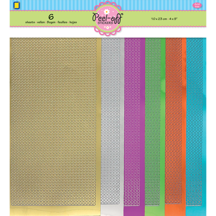 A 6-pack peel-off sticker set contains 6 different stickers of 10 x 23 cm / 4 x 9 inch of a theme.