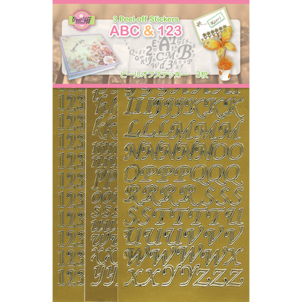 JeJe - ABC & 123 Peel off stickers set 3, Gold, 3 sheets