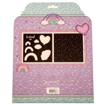 Perfect for cards, scrapbooks, journals and more, create beautiful whimsical designs when you combine with any Santoro Gorjuss papers, stamps & embellishments. contains flowers, stripes, hearts, people, plants, texts, clouds & rainbow.