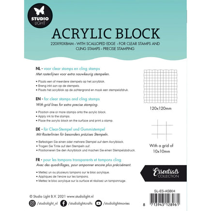 Studio Light - Essentials Acryl Stamp Block for Clear and Cling Stamps with Grid 12x12x0.8cm Nr.04