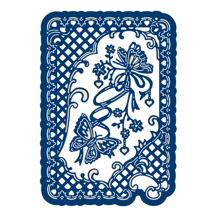 Lotti Dotti Abigail die features a beautiful diamond lattice border with butterfly centre embellishment. You can snip into the butterfly design to layer and raise the wings to create a dimensional card front or to add butterfly decor to your diamond lattice panel and other projects. This die is perfect for special occasions like Wedding and Anniversaries, add glitter to your butterflies for an extra special feel. With the extra fancy design of the frame, this could be die cut into cardstock to create an invitation base or paper craft shape.