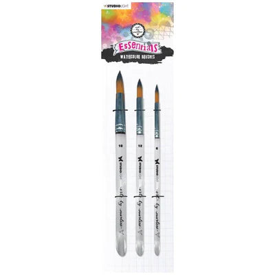 The Watercolour Rounded Brush Set is a set of 3 watercolour paint brushes that are part of the Essentials Collection from Art By Marlene for Studio Light.