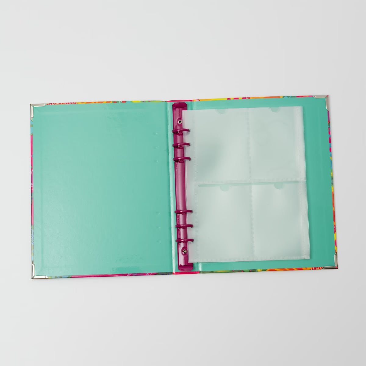 This colorful ring binder from Art by Marlene contains 5 pages, each with 4 pockets, to store your ATC cards. So you can already store 20 cards in it. This binder is a handy size that's easy to take to fairs and other events to swap your ATC cards. Others can easily browse through it and pick out the cards they want to swap with you. This binder is part of the Art by Marlene 25 collection.
