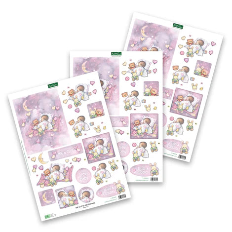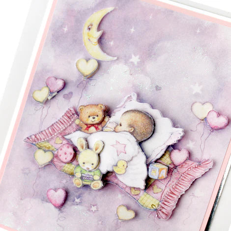 These adorable Die Cut Decoupage sheets feature a Baby Girl with Moon 3D scene to make sweet New Baby cards and paper crafts. The pack contains intricately die cut decoupage sheet, ideal as a 'quick make' for last minute card making. Each pack contains three sheets of one design. Simply press out from the sheet and layer up with either silicone glue or foam pads to complete your 3D image.