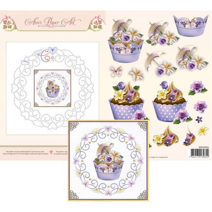 3D Card Embroidery Sheet - Cupcakes -No 16