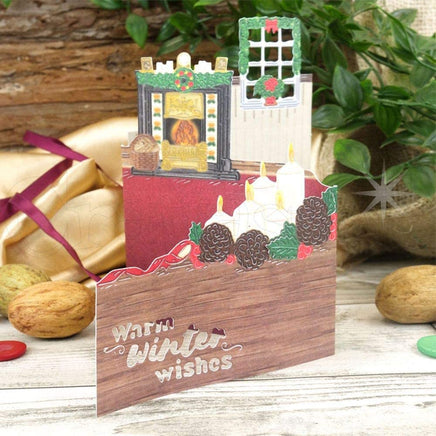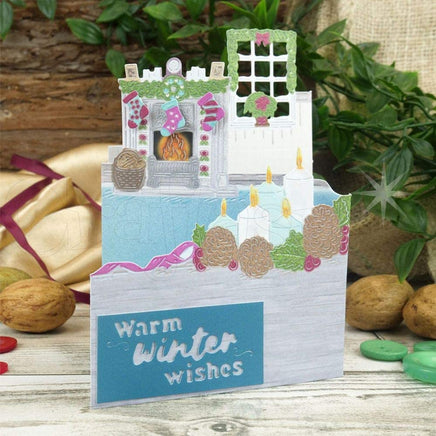 - Warm Winter Wishes features a snuggly home at Christmas with candles, a fireplace and a decorated window. This set also includes a ‘Warm Winter Wishes’ sentiment for the front of your card and additional stockings elements that could be used for decoupage on the fireplace. Each die set includes full instructions with photos for you to easily follow along.