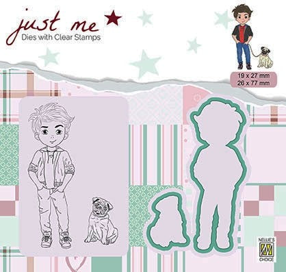 JMSD003 Just Me dies + Clear stamp "Boy with dog" 19x27 & 26x77mm